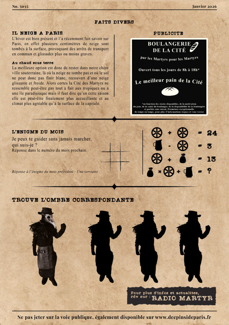 La Gazette de la Cité est disponible en physique gratuitement à la Librairie Deep Inside, ou consultable sur cette page gratuitement.